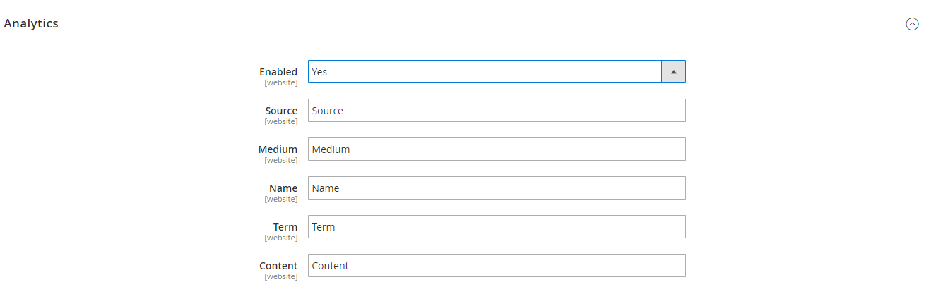 - In the Enable field: Select “Yes” to use Google Analytics tool. Then, the Campaign Source, Campaign Medium, Campaign Name, Campaign Term, Campaign Content items will be displayed automatically