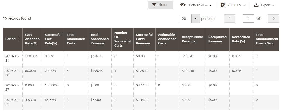 - Recoverable: Just like the Abandoned Cart column but it just shows the cart with email address.