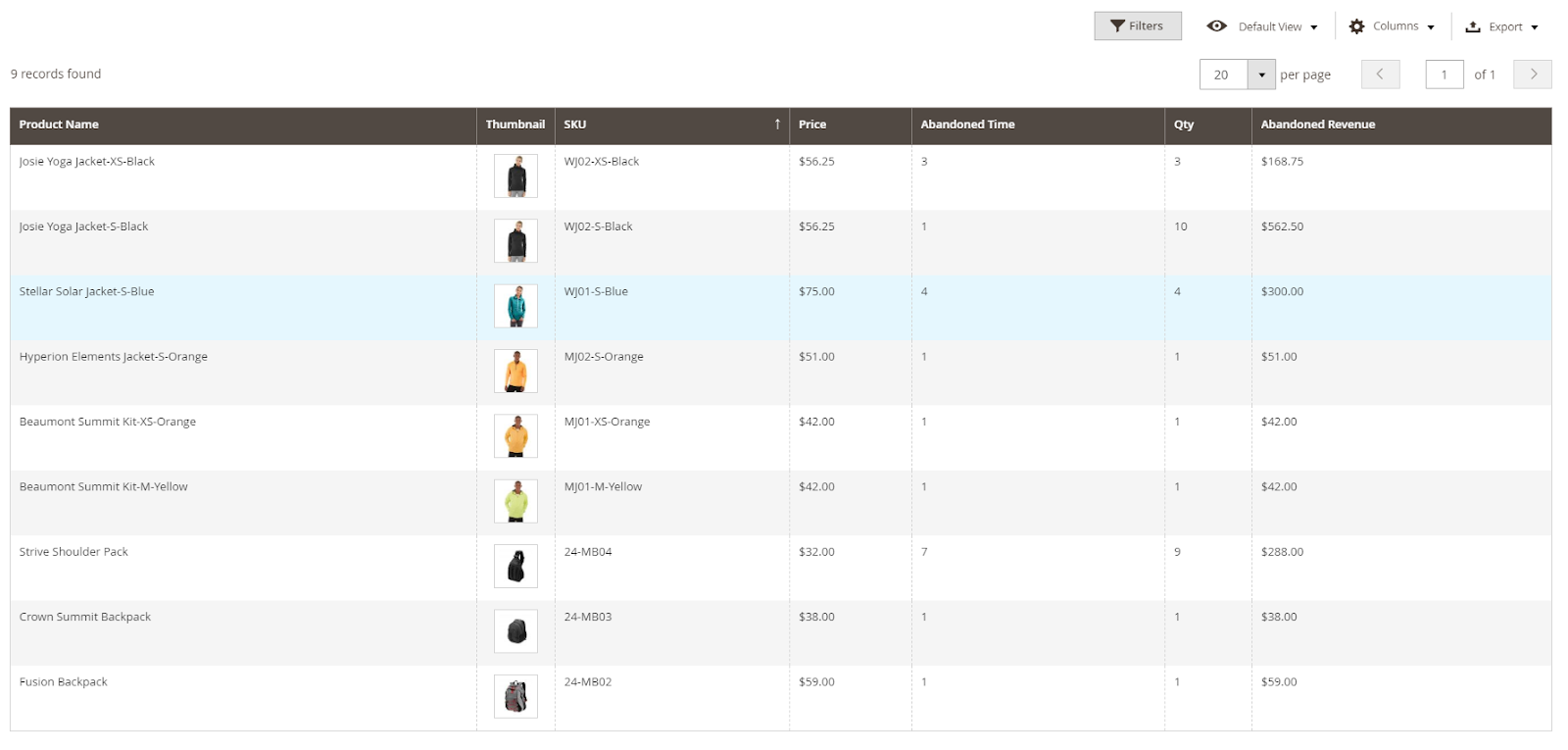 - Qty: The total qty of the product in the abandoned cart.