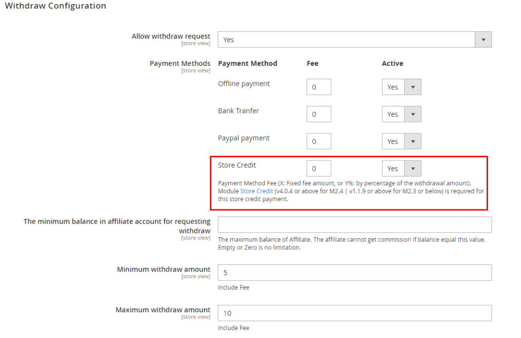 Affiliate is fully compatible with Mageplaza Store Credit extension to support store credit withdrawal conveniently, and link accounts together.