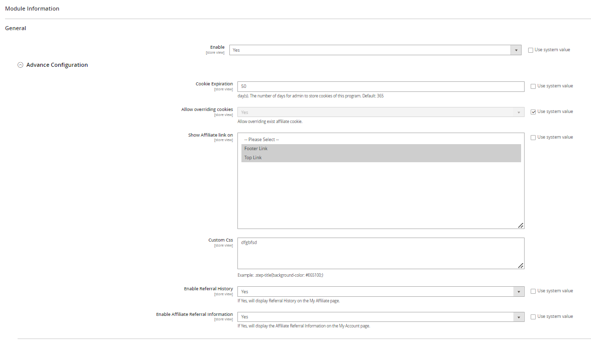 Enable Affiliate Referral Information: Select Yes to show Parent Affiliate customer information on the My Account page. Note that, the customer account has Sign Up Account Affiliate and the Affiliate account has been active.