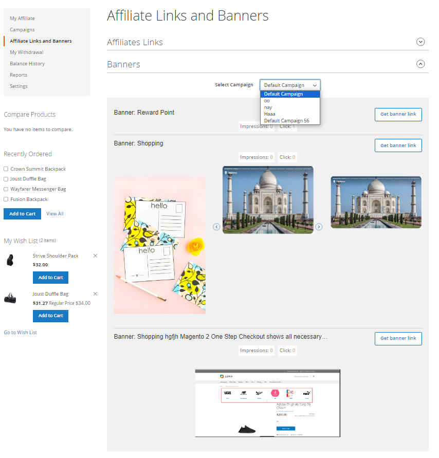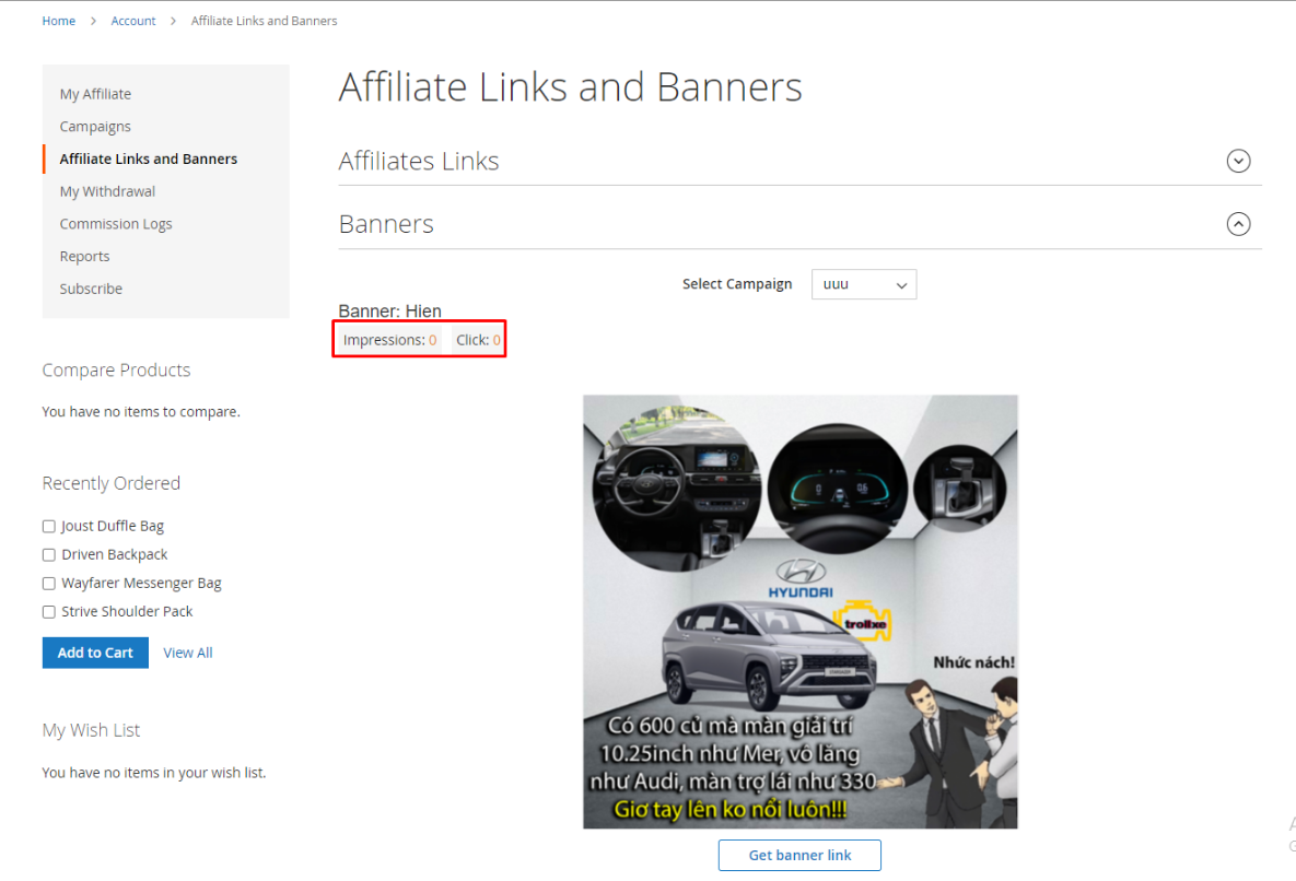 | 5 | Track affiliate program performance in detail | The integrated banner reporting module provides detailed click and impression data for each banner. Based on this important information, store administrators can access banner performance while affiliates can optimize advertising strategies. With data-driven insights, users can increase click-through rates and improve the overall success of their affiliate program. Store owners can check all data related to affiliate actions through program reports. With this feature, store owners can know everything at regular intervals, including best-selling products, affiliate accounts, and sales. |