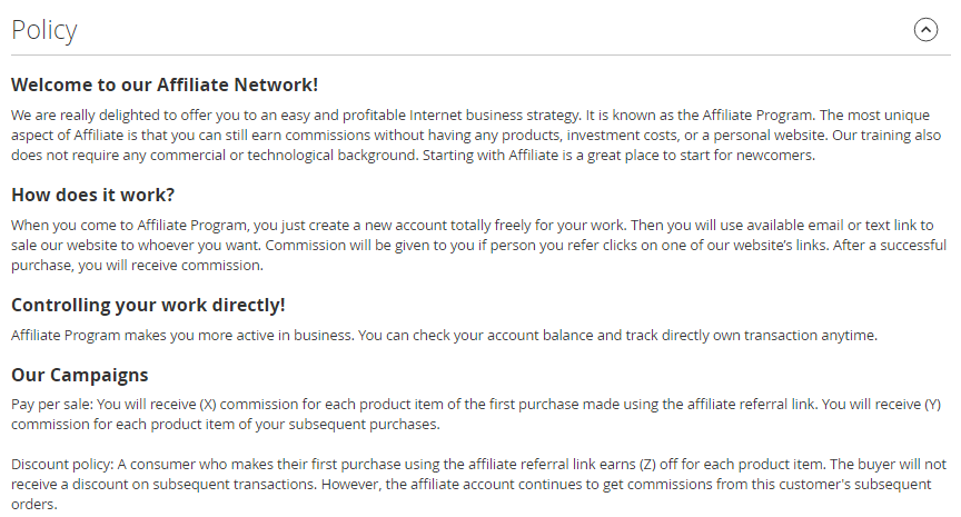 Affiliate Policy content