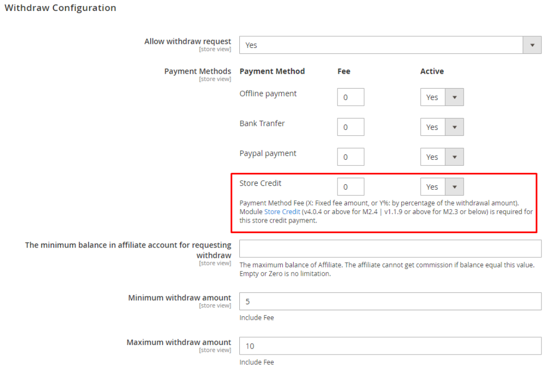 Affiliate is compatible with the Store Credit extension by Mageplaza to support withdrawal into store credit accounts conveniently and connect accounts with each other.