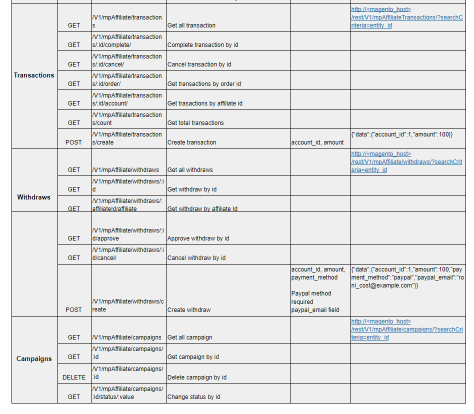Moreover, it can be customized to return only the selected fields (transaction, campaign, withdraw, account affiliate, change status of account affiliate, campaign)