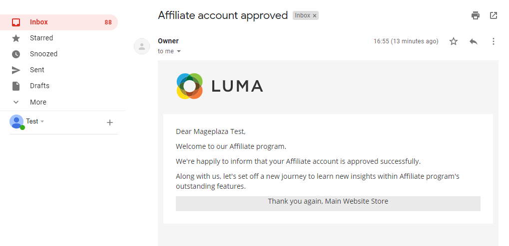 7.2 Notification emails for Affiliate account approval