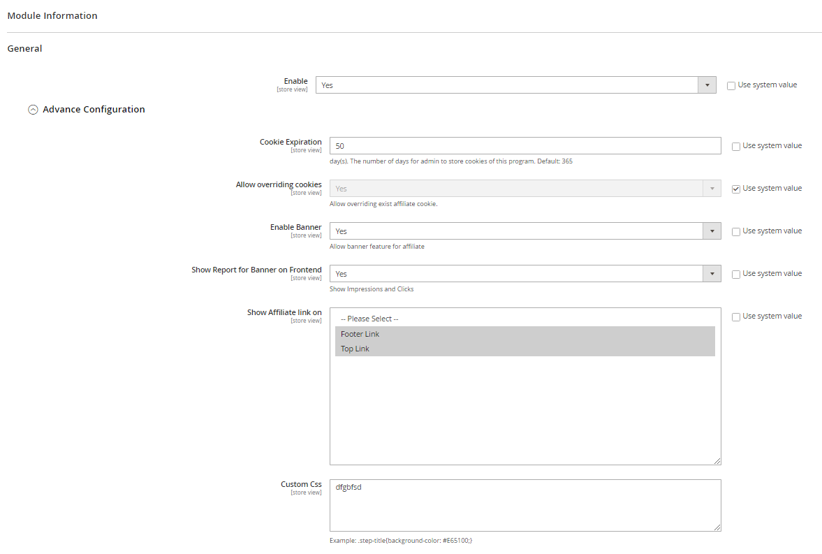 Show Affiliate link on = Footer Link: Display the Affiliate link at the bottom of the pageShow Affiliate link on = Top Link: Display the Affiliate link at the top of the page along with the link