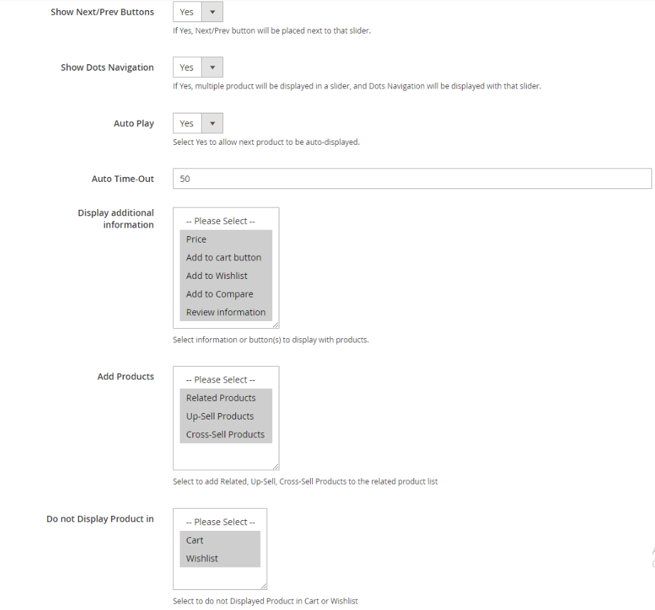 Auto Play: Select Yes to automatically display the next product in the slider.