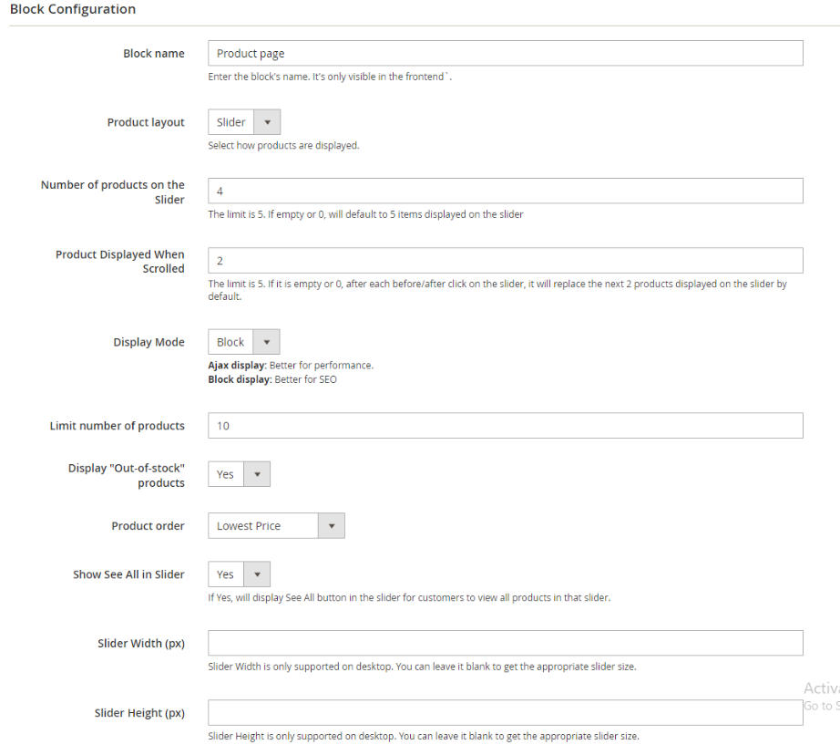 Slider Width (px): Enter px to the Slider Width field and the slider width will be changed according to the entered value. Note: You should set the appropriate Slider Width to ensure the displayed products in the slider are not affected.