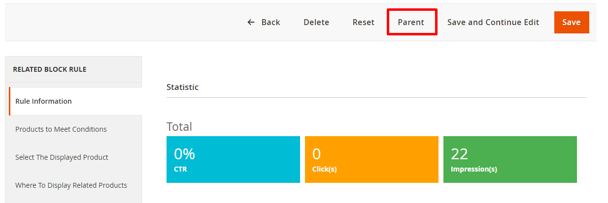 - Statistic : This is where the Rule is applied, the Product selection from the Block of ARP along with the percentage between the Product selection and the Page entry