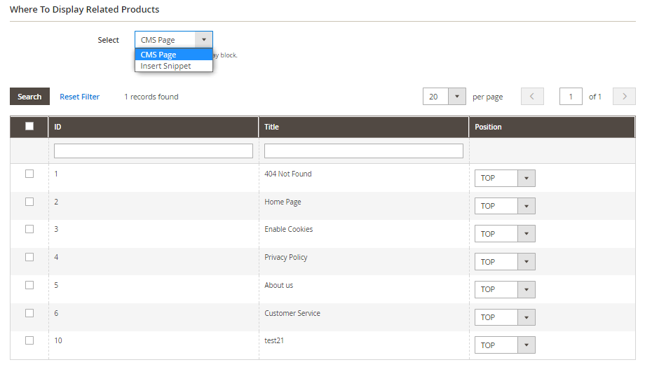 - CMS Page: Select pages to display the ARP block with positions of Top or Bottom