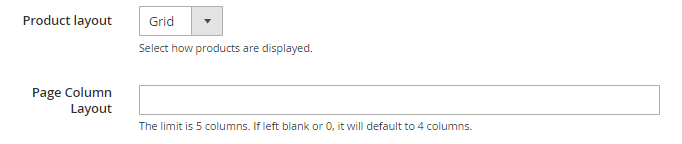 Page Column Layout: Type in the number of products you want to show in the grid. The limit is 5. If empty or 0, 4 items will be displayed on the slider by default.