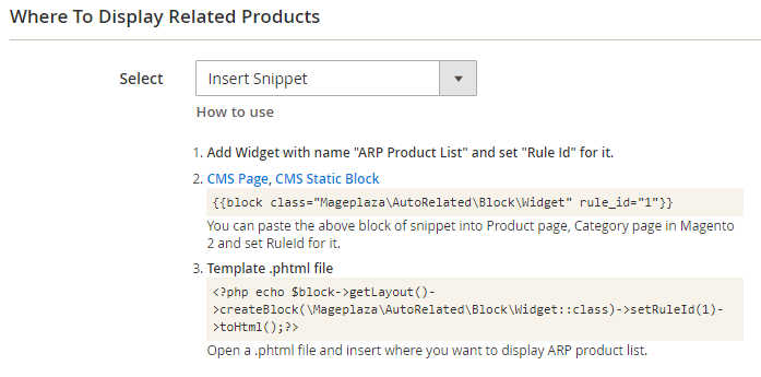 This section allows you to install the Related Product Block in the Category Page that you desire. For category pages that satisfy this rule, the Related Product Block will be displayed in the selected location