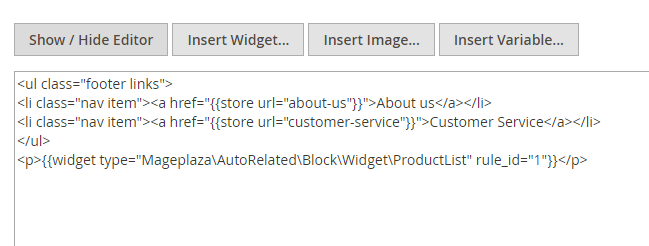 Method 2: Click to Show/Hide Editor and then paste the following code directly to the content. You can change the