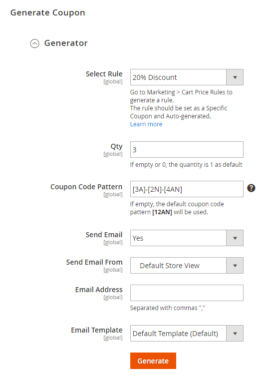 - If you choose "No", you will be able to generate and send coupon(s) by Generator.