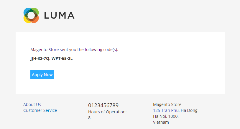 This is an example of the email for informing generated coupon code(s).
