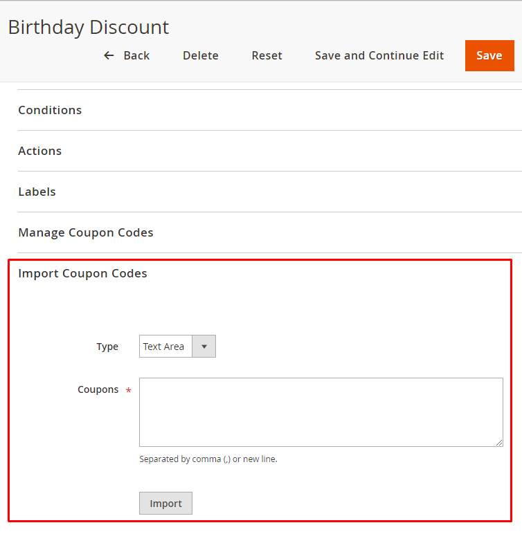 II. Import Coupon Code