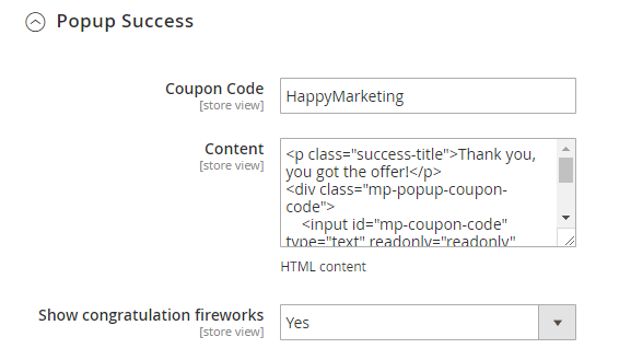 - Choose Yes to display fireworks when visitors register the email successfully.