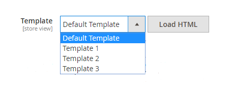 - After choosing the template to display as well as clicking on Load HTML, the selected template's code will display in the content of this section.