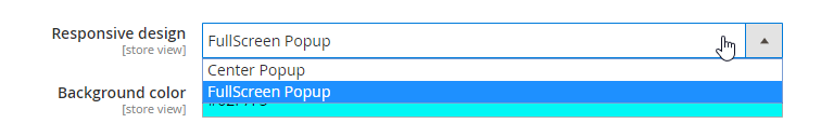 Responsive design = FullScreen Popup: The popup will show full screen. The content of the popup will show in the center of the screen