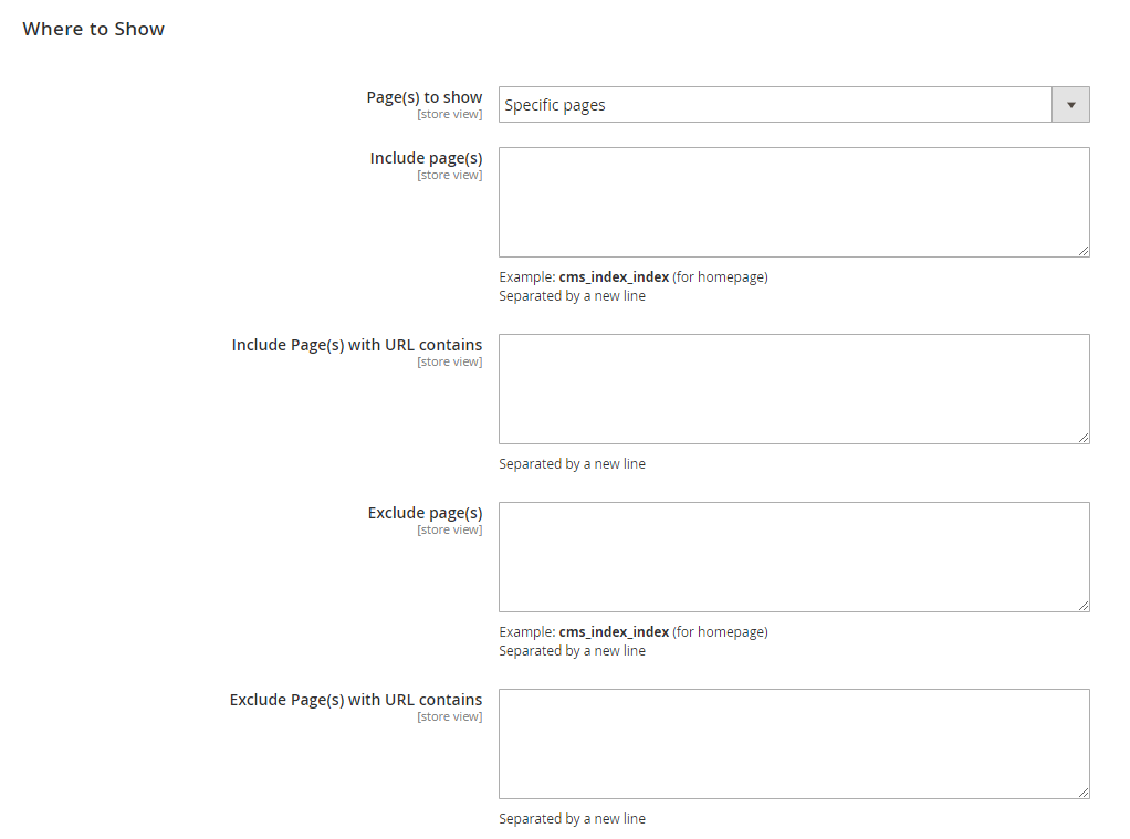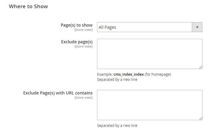 Note: The priority of Exclude section is greater than the Include section. Include Pages and Include Page with URL contains are two fields that need to enter a value to display the popup. If left blank, an error message will be displayed.