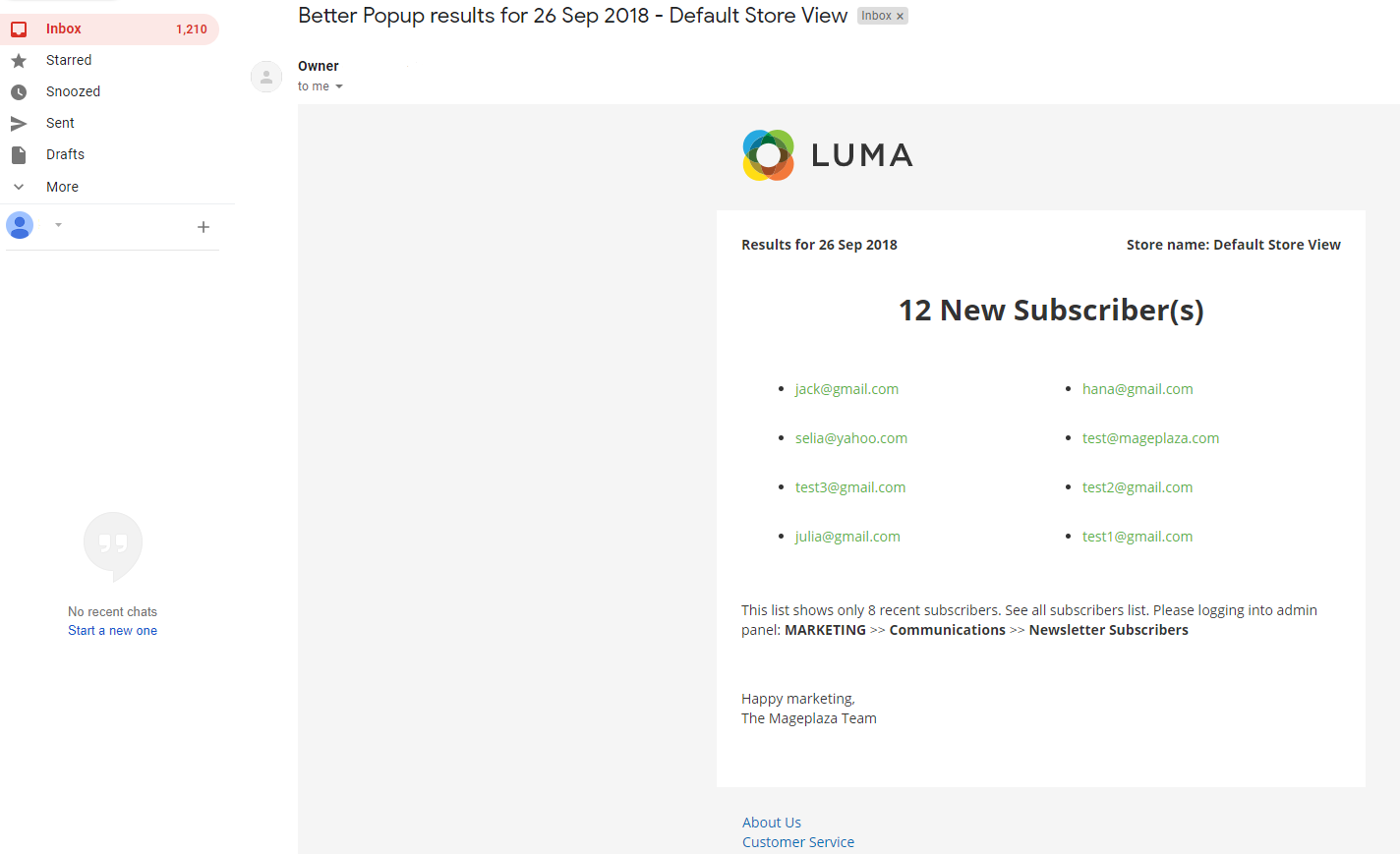 - If the website has multiple stores, it will send email reports for each email separately. For example, your website has 3 stores, it will send 3 emails for each store.