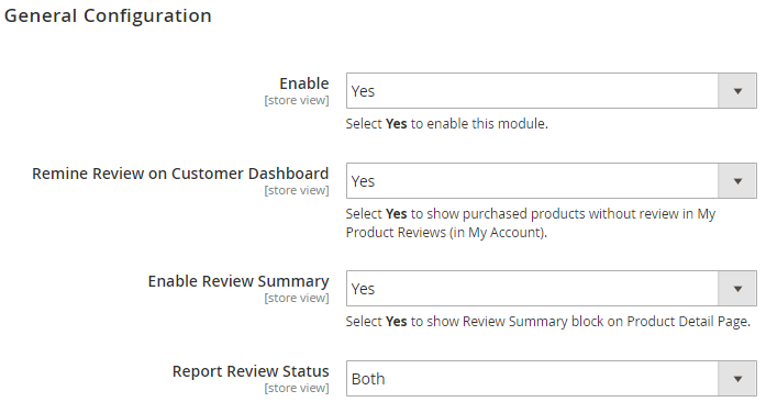 Yesto display admin answers (if any) at under each Review - Enable Social Share: Select Yes to display Share via Social buttons in each Review. Customer can click on the Social button to share that review on their social page