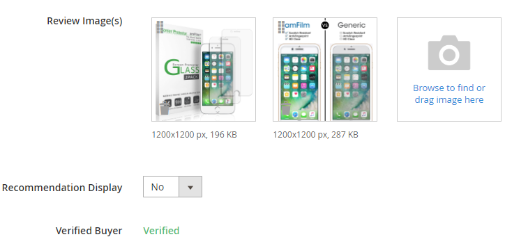 - Show Verified Buyer Mark: Select Yes to display a distinguishing sign that Customer reviews have purchased products with Customer's reivew not yet purchased this product