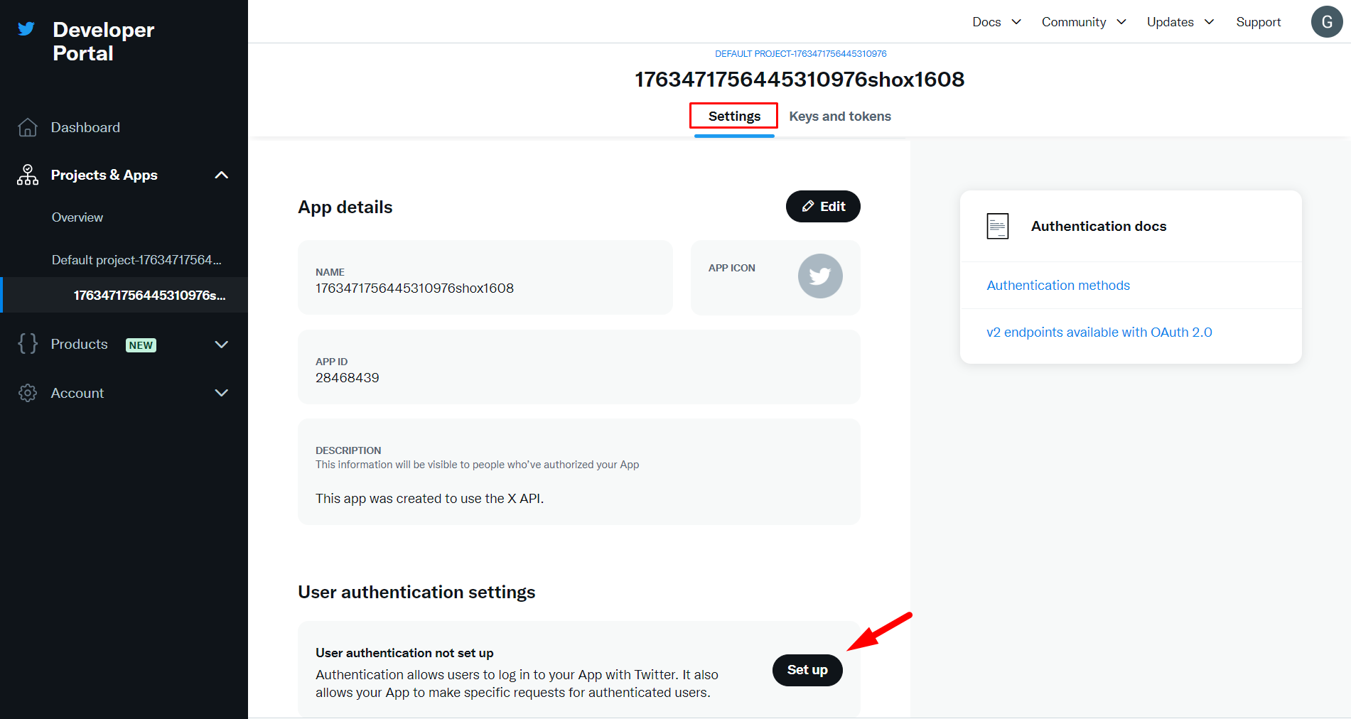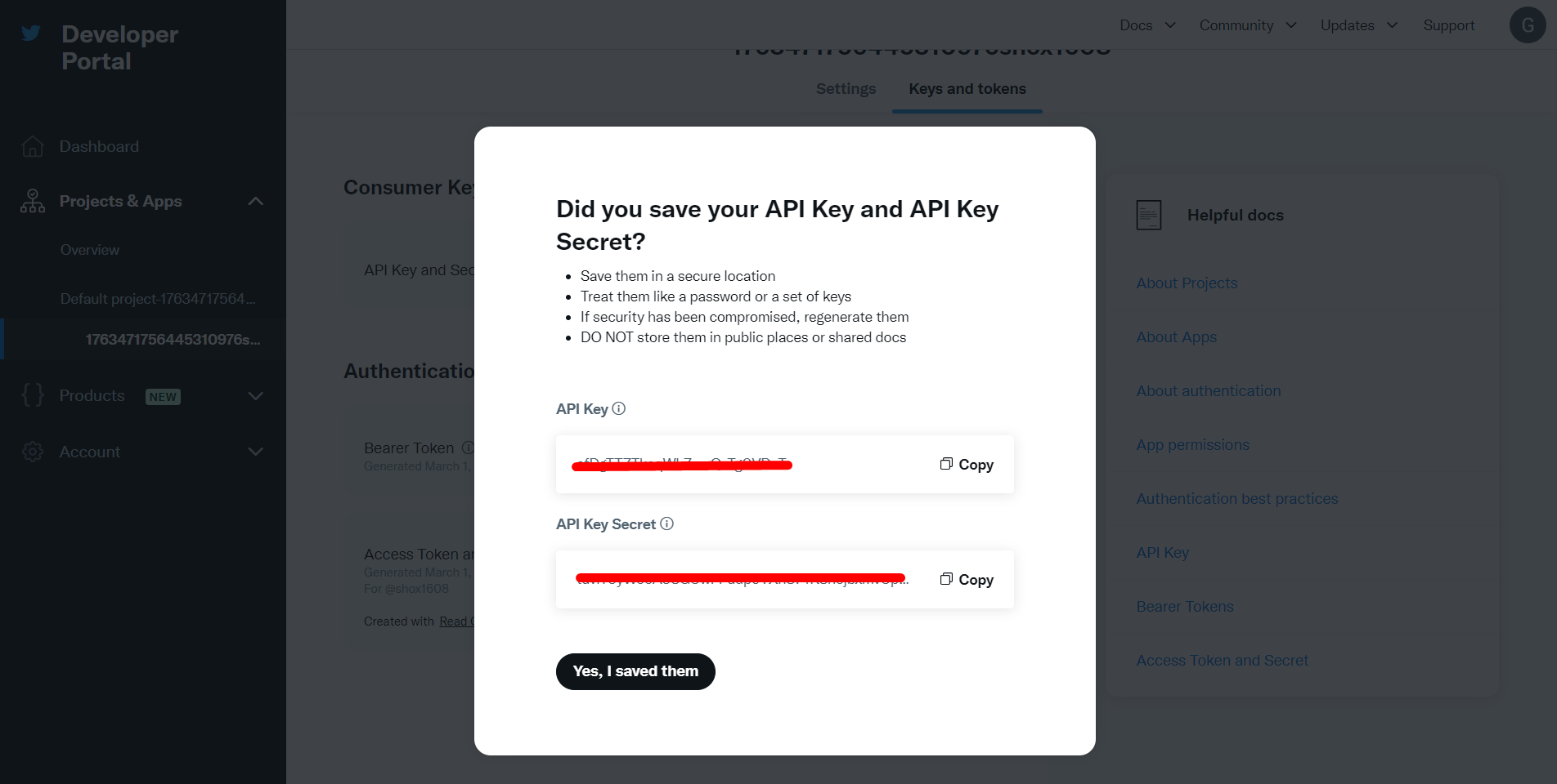 First go to: https://developer.twitter.com/en/portal/projects-and-apps