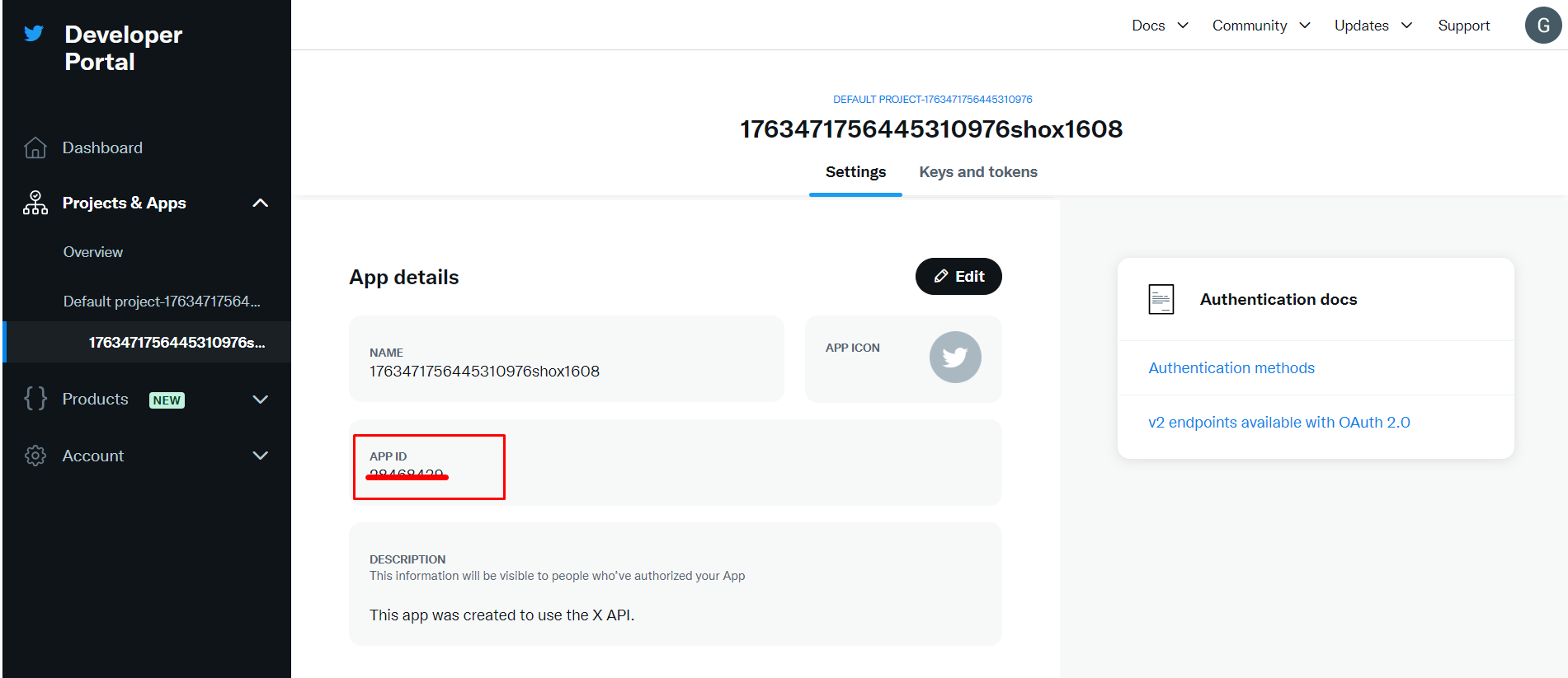 Specifically, Account ID data can be acquired via the Twitter Developer's Setting > APP ID area.