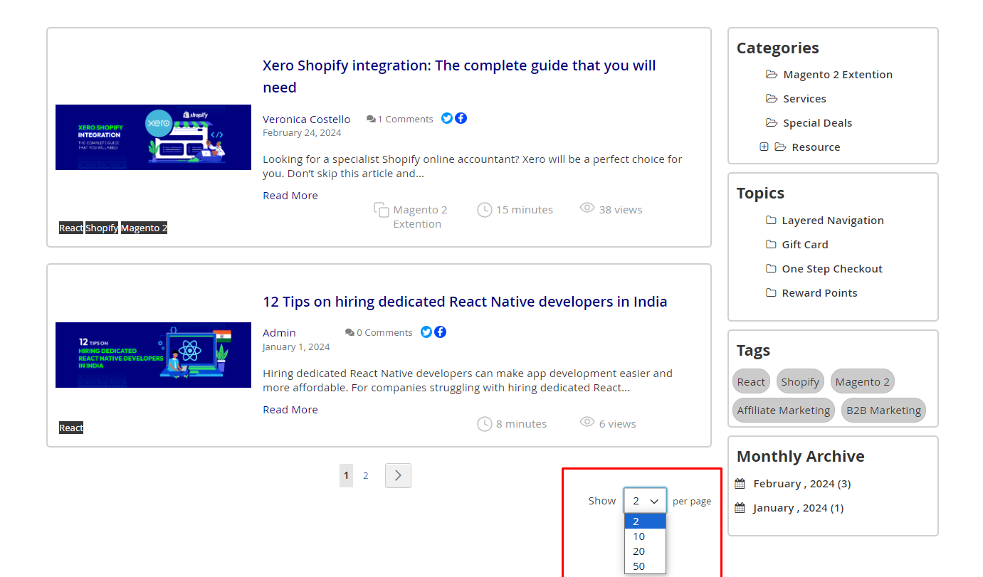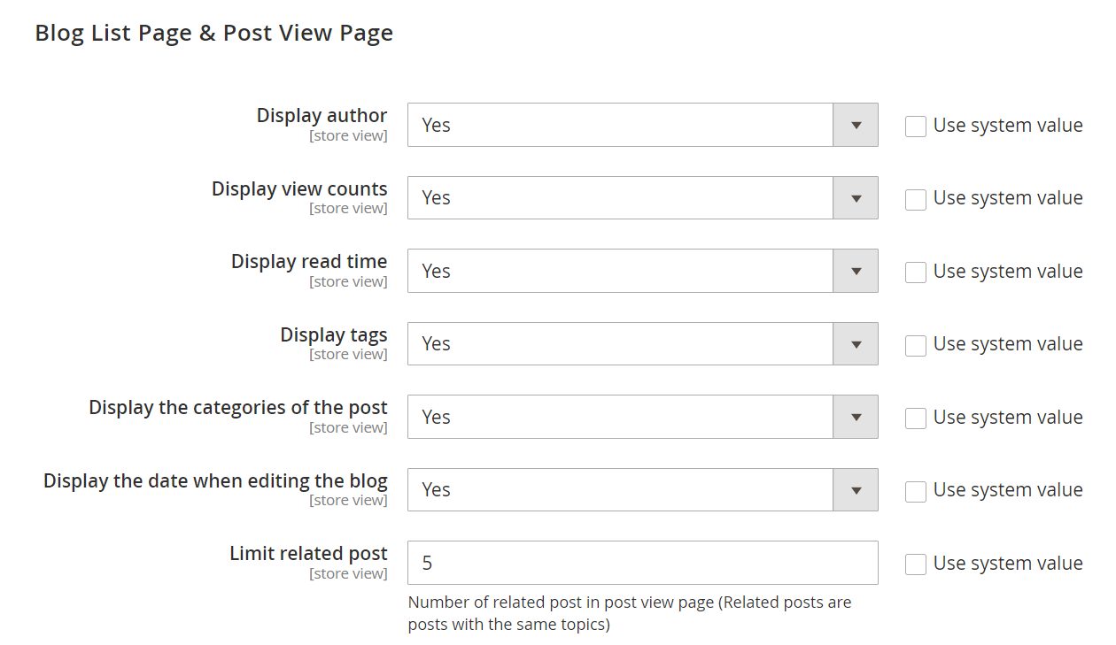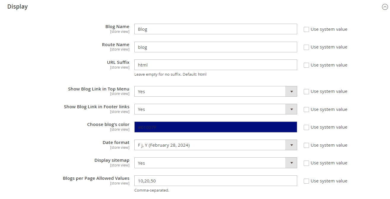 - In the Blogs per Page Allowed Values field: The number of post per page will be set in this field.