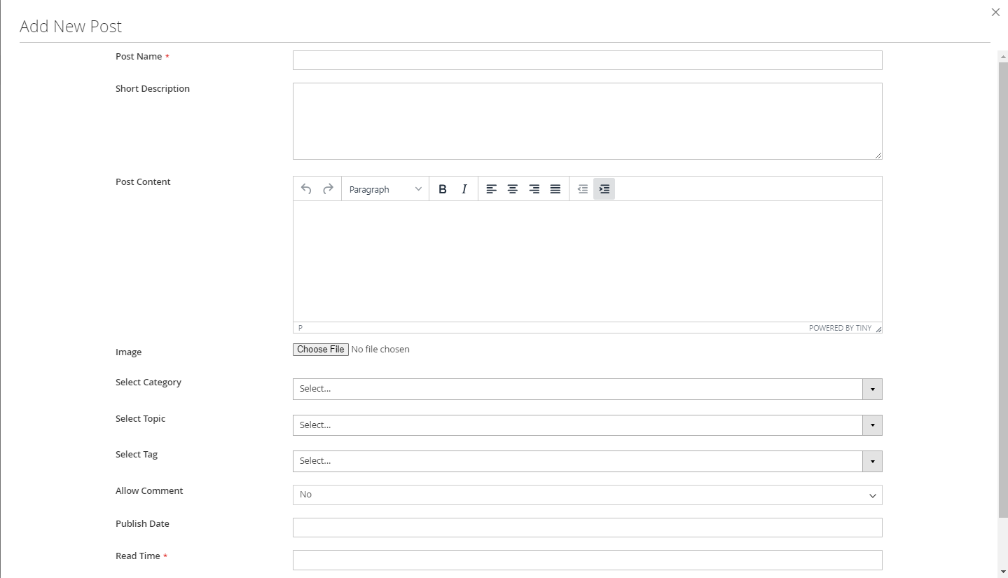 - Post Name: The name of the post, this is a required field