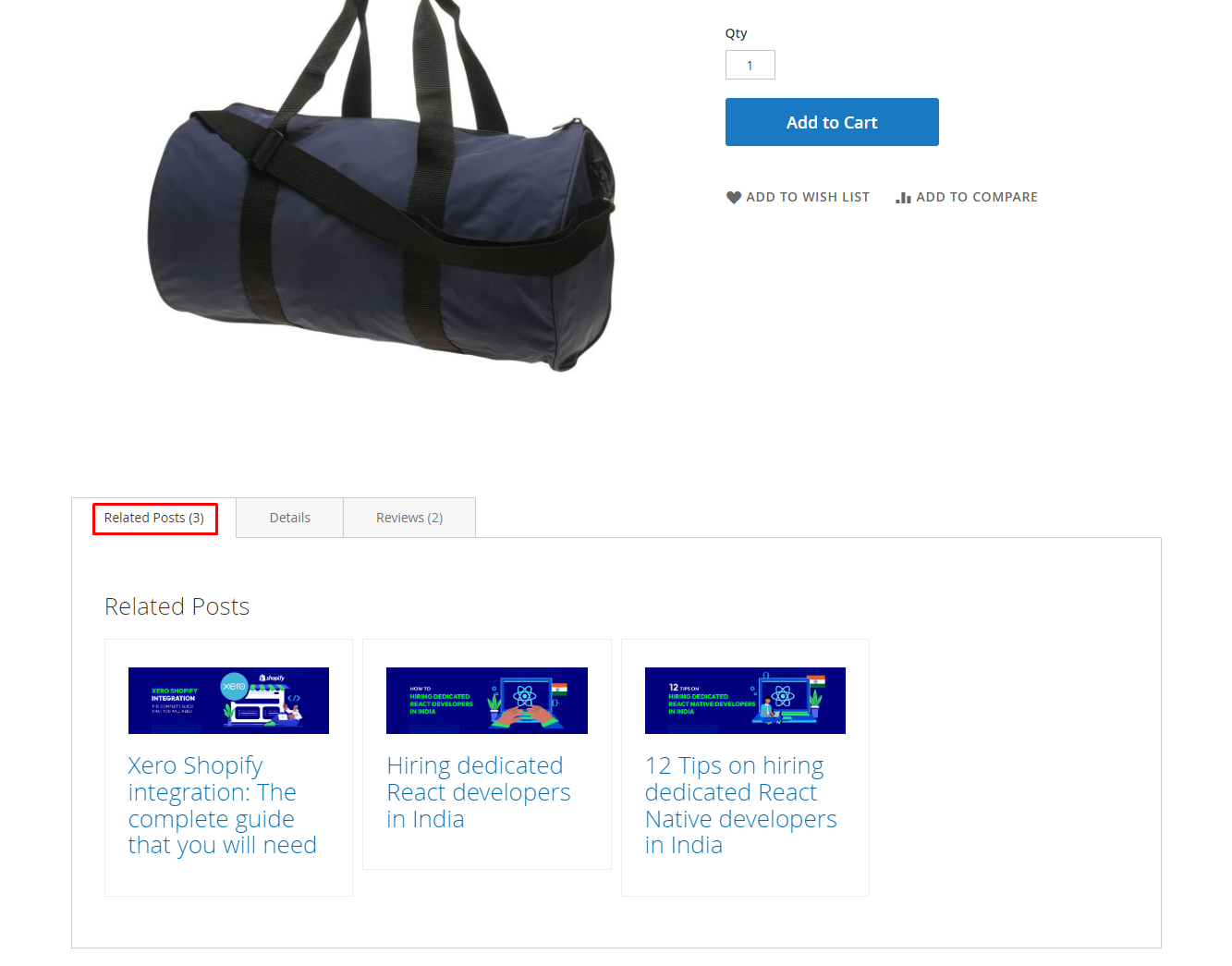 Product Detail Page contain posts can be added to Related Products to display in Post View Page. The selected products will recognize those posts are Related Posts and display them on the Product Detail Page.