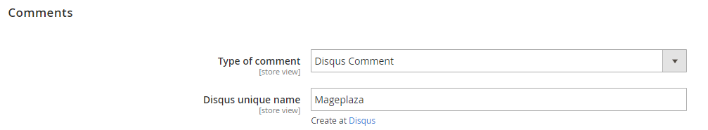 Admin needs to create a Disqus unique name and fill it in the configuration. This also requires the customer have a Disqus account to be able to comment.
