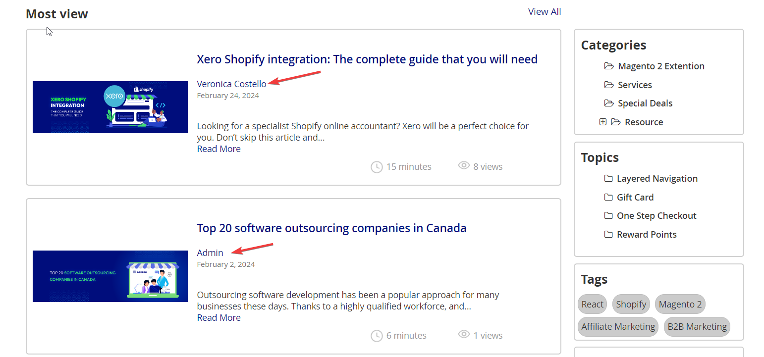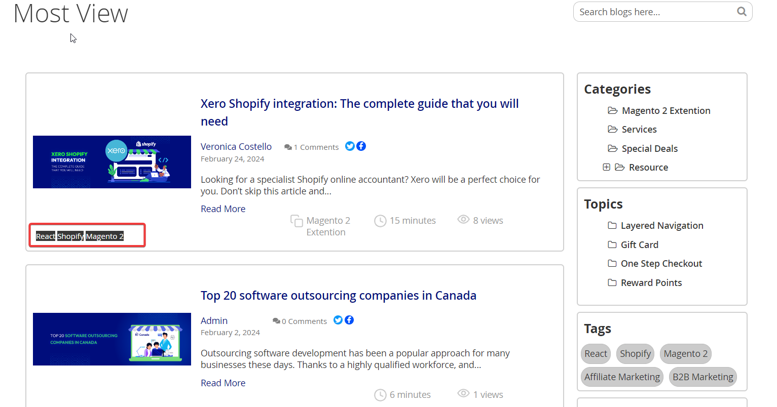 - Mageplaza's Blog Extension supports the use of REST APIs for Post, Categories, Tags, Topic, Author, Comment, Likes