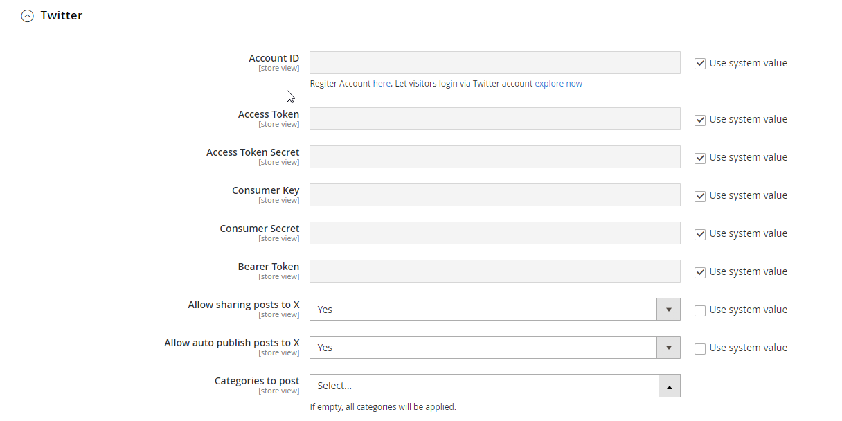 - Allows customers to register as an author: Select Yes to allow customers to register as an author for the store blog