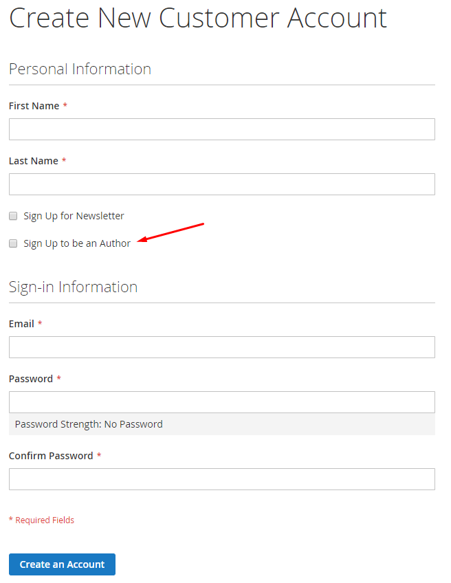Method 1: Sign up for an author when Create New Customer Account