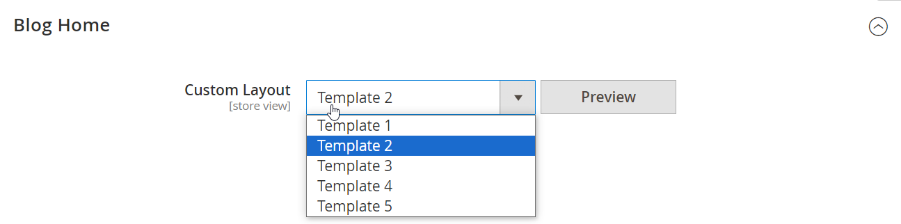 - Custom Layout: Choose one template to apply for the Blog Home page