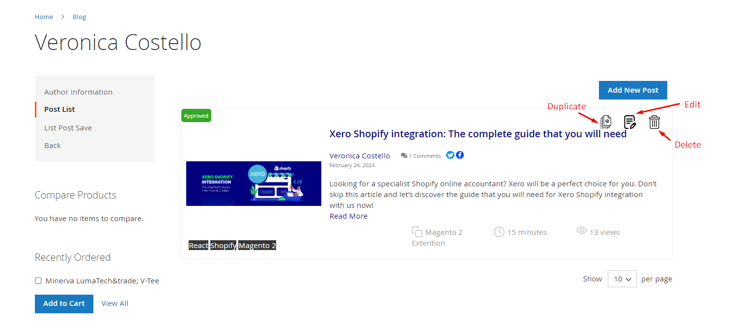 After creating the post, the author can Duplicate/ Edit/ Delete post