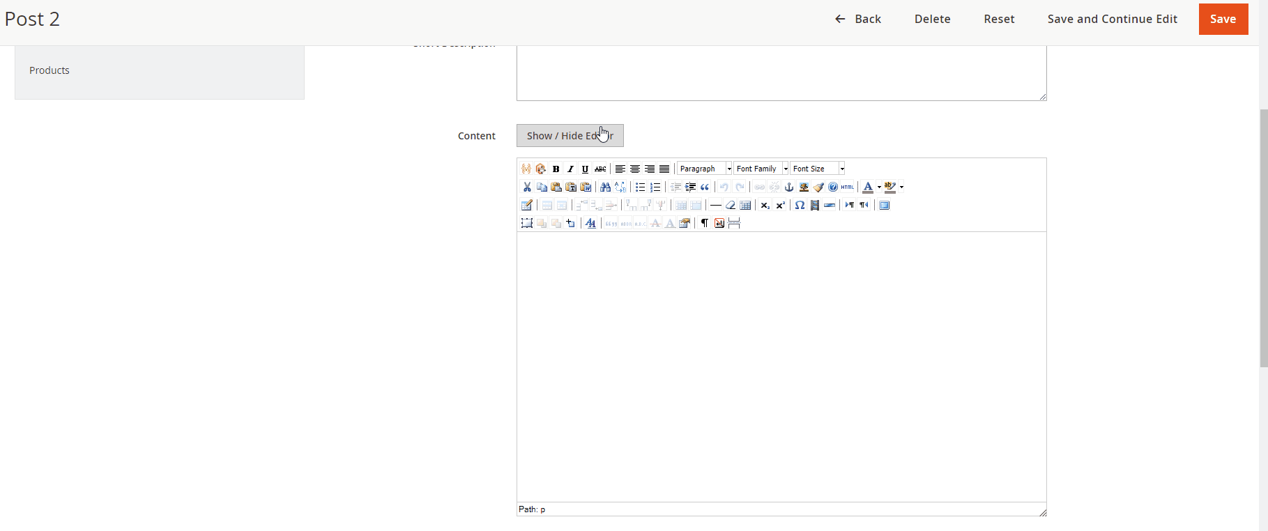 Mageplaza > Better Blog: Post. You can add the widget by two methods- Option 1: Click on the widget icon in the Content’s edit