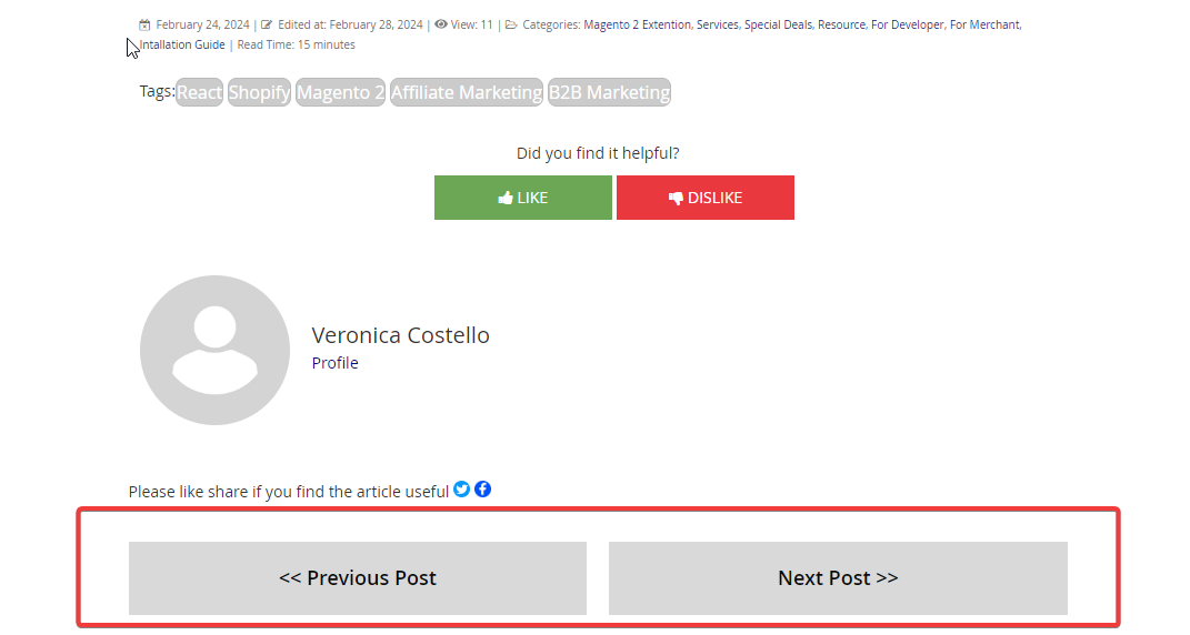 - Show Prev. and Next post links: Choose "Yes" to make the Post View Page's Previous and Next buttons visible. Users can access the previous or next article they are currently reading.