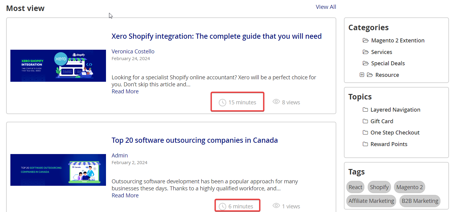 - Read Time:. Add the amount of time needed to read a complete article.