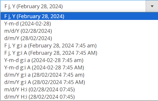 - In the Date Format field: Choose the date format to display. We have 12 types of date format.