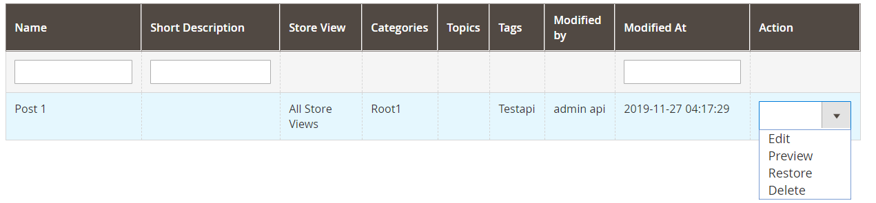 - Mageplaza's Blog Extension supports the use of REST APIs for Post, Categories, Tags, Topic, Author, Comment, Likes