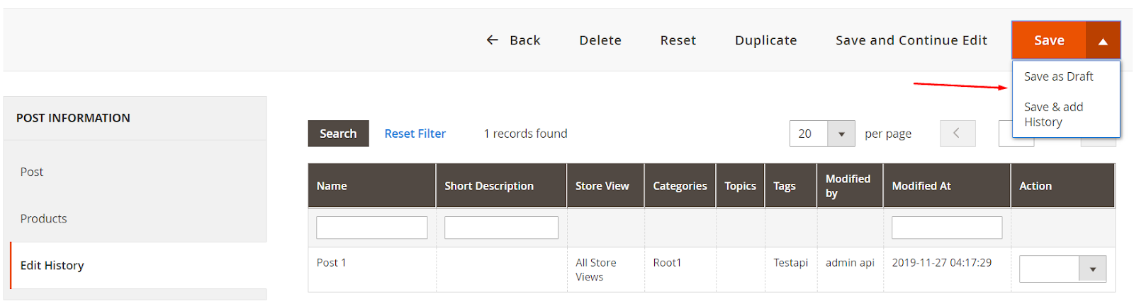 After creating the post, the author can Duplicate/ Edit/ Delete post