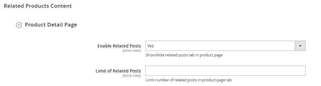 - In the Enable Related Post field: Choose Yes to show related posts on Product Detail Page.