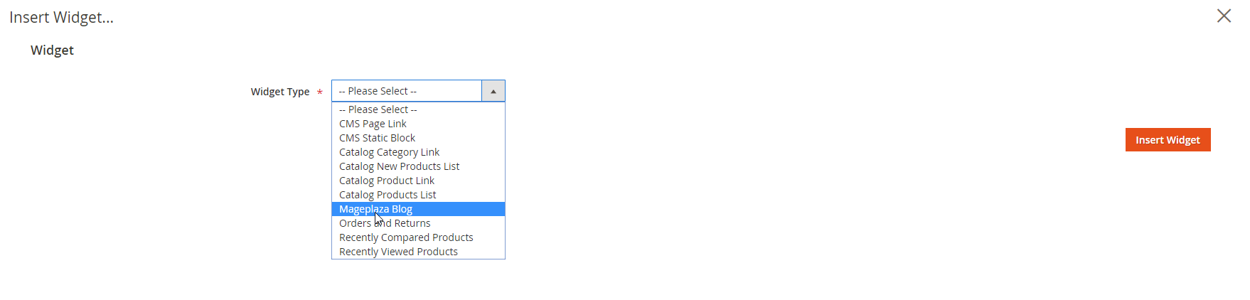 Mageplaza Blogto use this widget for adding posts in the content of any optional pages.