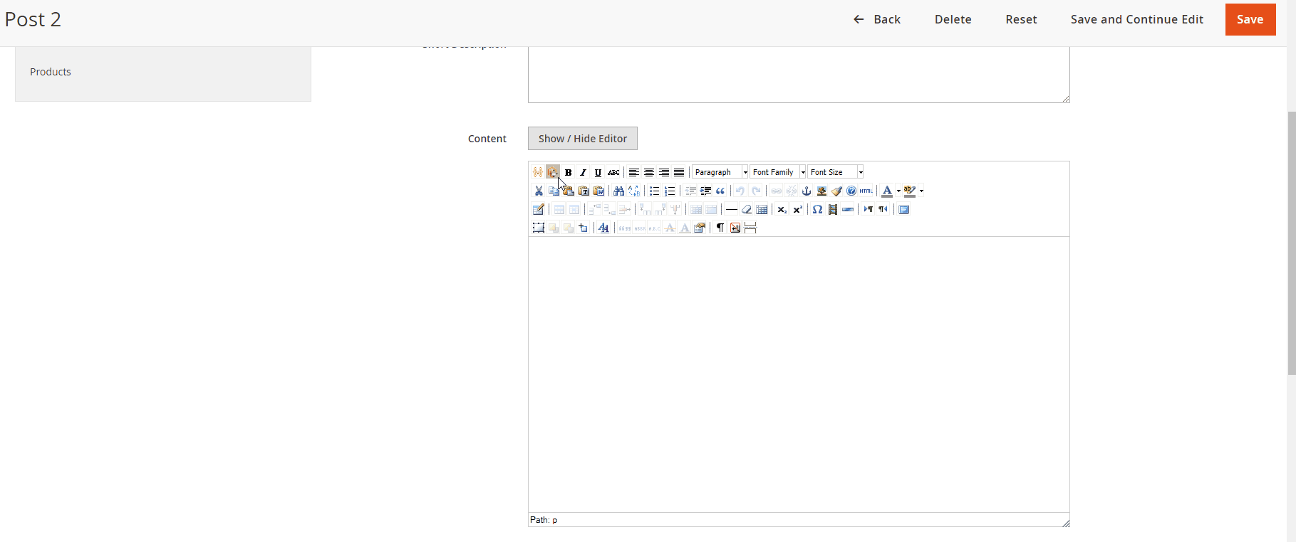 Mageplaza > Better Blog: Post. You can add the widget by two methods- Option 1: Click on the widget icon in the Content’s edit