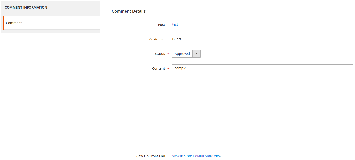 - Content: Admins can edit the content of the comment at this field. The comment at the frontend will change as the backend. In the comment management grid, admins only see up to 150 characters of the content.