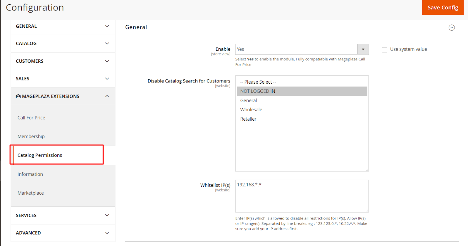 Login to the Admin Magento, choose Stores> Configuration> Catalog Permissions